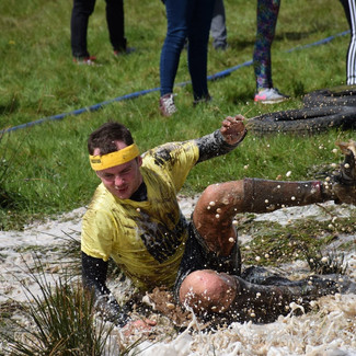 Last Saturday the sun was bright and our spirits were high, 19 Riada employees geared up in their yellow t-shirts and headbands for this years Run Mucker Run. Tip-toeing in the mud for a quick warm up and stretch, the starter gun was fired and off we went.